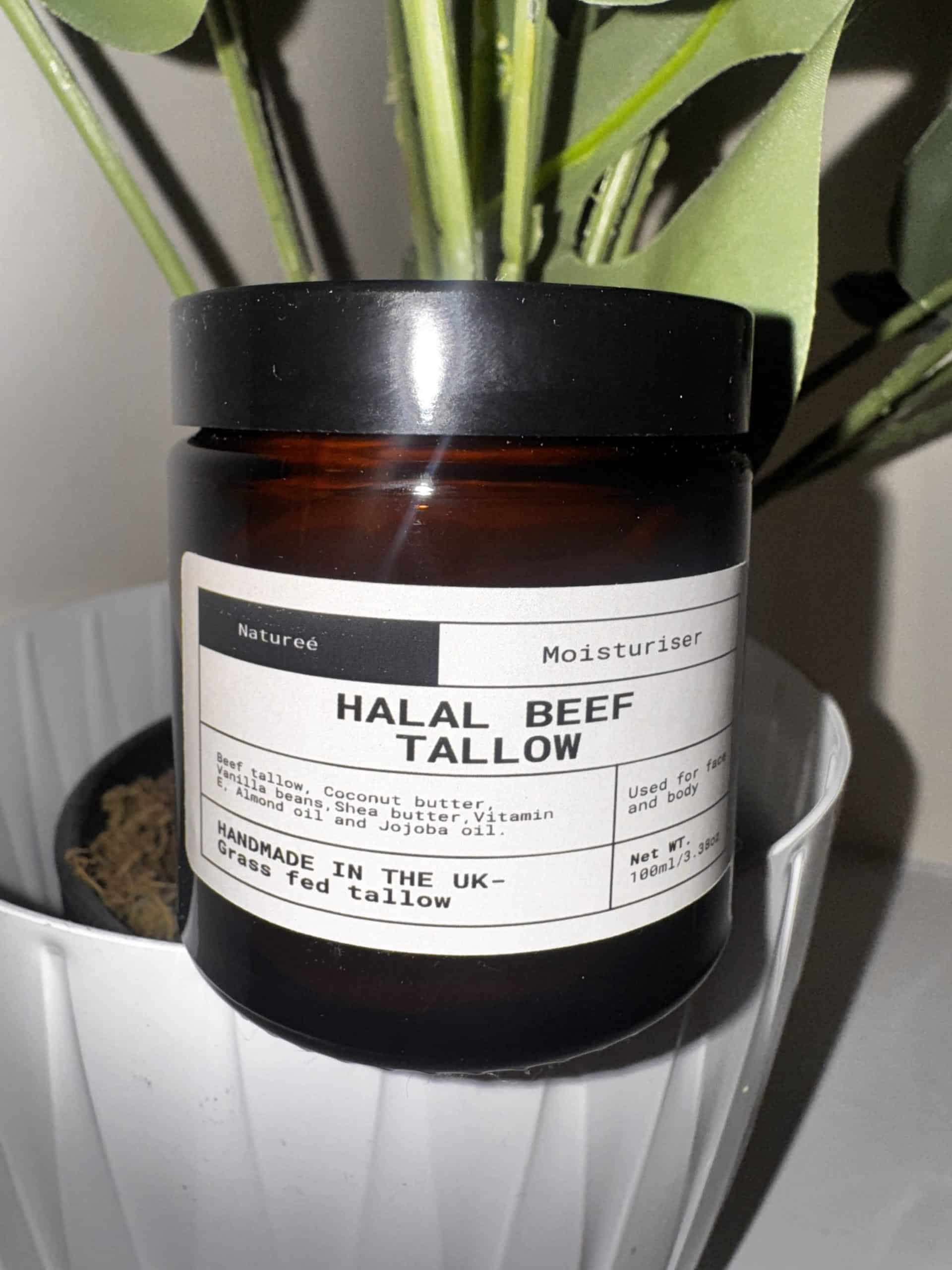 A deeply nourishing halal-certified beef tallow moisturiser made with pure, natural ingredients.